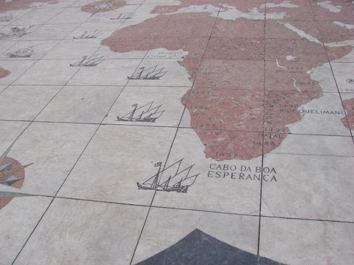 Kort af einni af siglingaleiðum Vasco de Gama á torginu við minnismerkið.
